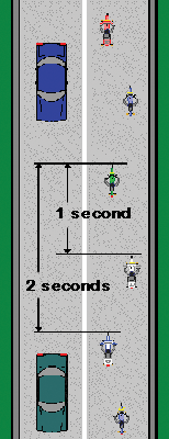 Unless the Road Captain directs otherwise, all THD group rides utilize the staggered riding formation. This simple technique gives every rider maximum space and time to react.