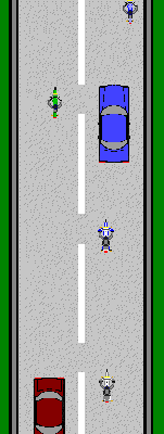 Following Suit: The rest of the riders follow, moving back into the original lane one at a time after safely passing the vehicle.