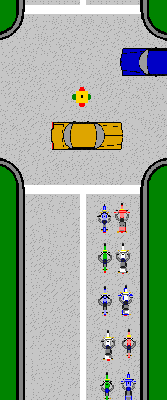 When The Harley District comes to a stop at an intersection, we briefly modify our formation to ensure we clear the light quickly and as a unified group: